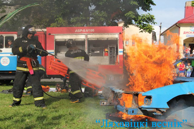 Фізічную падрыхтаванасць, вытрымку, сілу, спрактыкаванасць, мабільнасць ляхавіцкія выратавальнікі прадэманстравалі ў мінулы чацвер у гарадскім скверы ля фантана, дзе з размахам прадоўжылася святкаванне. У праграме – конкурсы, прэзентацыя пажарнай, аварыйна-выратавальнай тэхнікі. Дэманстравалася экіпіроўка супрацоўнікаў МНС і нават дазвалялася яе прымераць, чым многія і скарысталіся. Было нямала жадаючых паспрабаваць сябе ў трапнасці – пастраляць у ціры. Дзятва весела бавіла час на атракцыёнах. З нецярпеннем ляхавічане чакалі шоу ад агняборцаў: падрыхтавалі камеры тэлефонаў, каб усё ўбачанае зафіксаваць. Дарэчы, у сусветнай павуціне відэаролік пра службу і паўсядзённае жыццё камандзіра аддзялення ПАВЧ Ляхавіцкага РАНС Андрэя Пятрушкі набірае новыя тысячы праглядаў!