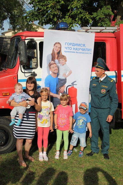 Нашы агняборцы прадэманстравалі элементы сваёй штодзённай службы, у тым ліку тушылі аўтамабіль, што загарэўся. І гэта трэба было бачыць! Асаблівыя ўражанні атрымалі дзеці, якія літаральна акупіравалі выратавальную тэхніку і засыпалі пажарных пытаннямі. Такая дэманстрацыя супрацьпажарнай сілы – яскравая ілюстрацыя да шматлікіх прафілактычных акцый, якія праводзяць супрацоўнікі РАНС. А ўбачанае ў скверы ўздзейнічае на свядомасць лепш любых слоў.