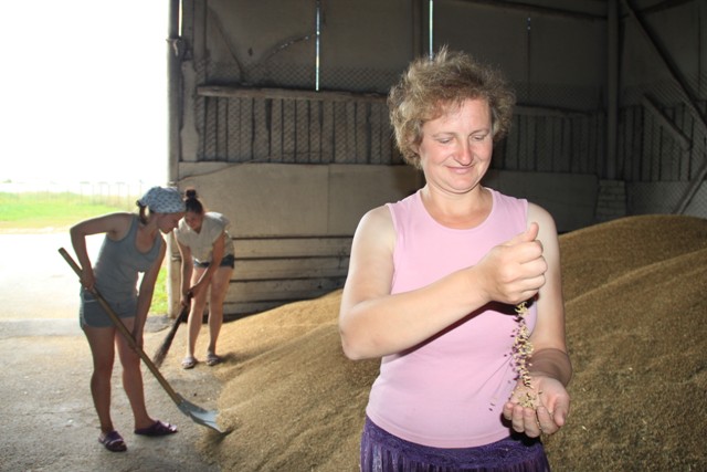 У адрозненне ад камбайнаў, для зернесушыльных ачышчальных комплексаў начныя піт-стопы не прадугледжаны. У сітуацыі, калі іх дапамога патрэбна, гарачы бег ЗСК не спыняецца суткамі. Што і адбываецца ў гаспадарках раёна зараз. У тым ліку і ў ЗАТ «Белпрампрыбор», наш «удзел» ва ўборачнай кампаніі якога пачаўся з размешчанага ў Шчэрбаве зернятока. Людміла Мароз тут за непасрэднага гаспадара і за руплівую дакладную гаспадыню. Загадчыца зернясклада, на старце жніва яна ўзяла на сябе яшчэ і абавязкі вагаўшчыцы. Кажа, што часова: з выхадам на пік аб’ёмаў паступаючага зерня падобнае сумяшчэнне наўрад ці магчыма.