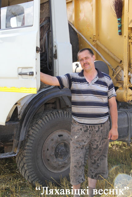 А тым часам на ўчастку № 1 разгружаецца чарговы бункер. Начальнік участка Аляксандр Рамейка ўключае секундамер: 2,5 мінуты – і 5 тон камбайн перасыпаў у кузаў аўтамабіля. Не да любавання ўдзельнікам жніва, у тым ліку і вадзіцелю з 30-гадовым стажам Уладзіміру Грыцкевічу, – дарагая кожная хвіліна. Яго задача – без страт і хутка даставіць новы ўраджай на ЗСК.