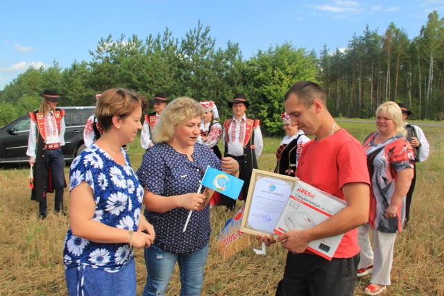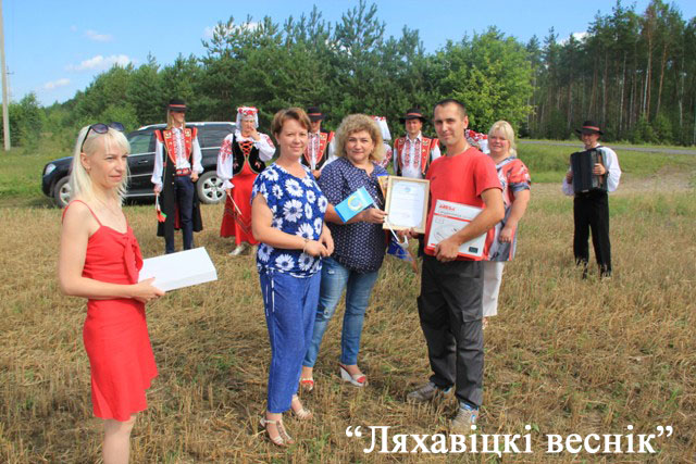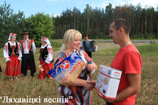 Але ўсё ж перапынак не па раскладзе ў мінулую суботу на полі ля Падлаззя здарыўся. Прычына надзвычайная: ёсць першы тысячнік на ляхавіцкім жніве – ім стаў трактарыст Аляксандр Азарчык з «БелДана», які ў гэтыя гарачыя дні адвозіць намалочанае зерне на зернесушыльны комплекс. Павіншаваць яго прыехалі прадстаўнікі райвыканкама і кіраўніцтва «БелДана», прафсаюзныя лідары раёна. Намеснік начальніка райсельгасхарчу Ірына Страмавус уручыла герою дня падарунак ад раённай улады, старшыня РК прафсаюза работнікаў аграпрамысловага комплексу Ірына Чура дапоўніла віншаванне пісьмом падзякі ад райкама прафсаюза, а галоўны спецыяліст аддзела ідэалагічнай работы, культуры і па справах моладзі райвыканкама Ларыса Юшкевіч – узнагародай ад РК БРСМ. І ўсё гэта было аздоблена шчырым захапленнем, словамі падзякі за ўдарную працу, пажаданнем вартага працягу і …выступленнем народнага ансамбля народнай песні «Крыніца».