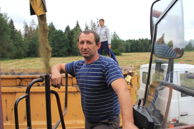 – Я тут на сезон уборкі. Працуецца нармальна. Камбайн? За тэхнікай трэба глядзець. Абеды? Прывозяць у поле, атрымліваем і так званы падвячорак.