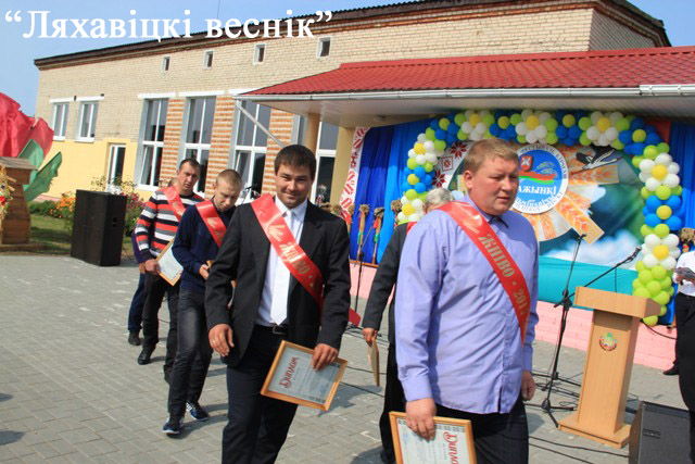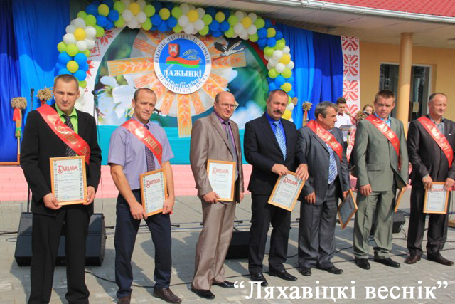 Пад апладысменты на дажыначную сцэну падымаліся жніўныя героі – пераможцы раённага спаборніцтва. Сярод сельгаспрадпрыемстваў першае месца ў СВК «Ляхавіцкі» (старшыня Іван Вітко), другое – у ААТ «Жарабковічы» (дырэктар Антон Булаты), трэцяе – у ЗТАА «БелДан» (дырэктар Мікалай Нікіцін). Старшыня райвыканкама ўручыў дыпломы пераможцаў лепшым камбайнерам, вадзіцелям на адвозцы зерня, аператарам зернесушыльных комплексаў.