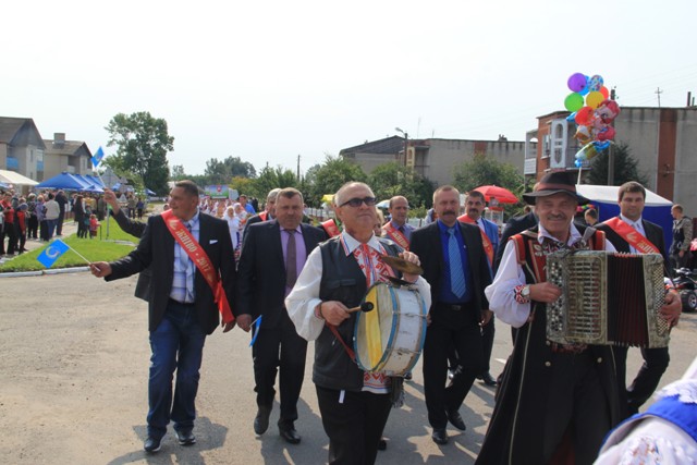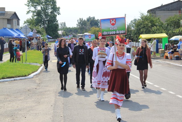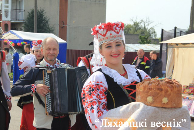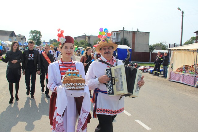 Да чаго ж пасуе аграгарадку ўпрыгажэнне ў выглядзе імправізаваных сялянскіх падворкаў, якія часова перасяліліся сюды з усіх сельсаветаў Ляхавіччыны. Кожны стараўся здзівіць, парадаваць, вызначыцца. Чаго тут толькі ні ўбачыш! Стравы нацыянальнай кухні можна было пакаштаваць і нават даведацца «сакрэтныя» рэцэпты. Як заўжды, вырабы на розны густ дэманстравалі народныя ўмельцы. Поўдзень. Святочнае шэсце. У першых радах – героі-перадавікі. Яшчэ тыдзень-другі назад яны ад святла да цямна шчыравалі на хлебнай ніве, а сёння ў строгіх касцюмах з чырвонай стужкай пераможцы ў складзе дэлегацый сваіх сельгаспрадпрыемстваў прайшлі па галоўнай дажыначнай вуліцы. Многія з іх добра знаёмыя і шматлікім чытачам раёнкі: іх прозвішчы гучалі ў жніўных зводках, фотаздымкі ўпрыгожвалі рэпартажы, якія карэспандэнты «ЛВ» вялі на працягу ўсяго жніва. Кожную дэлегацыю суправаджаў музычны калектыў.