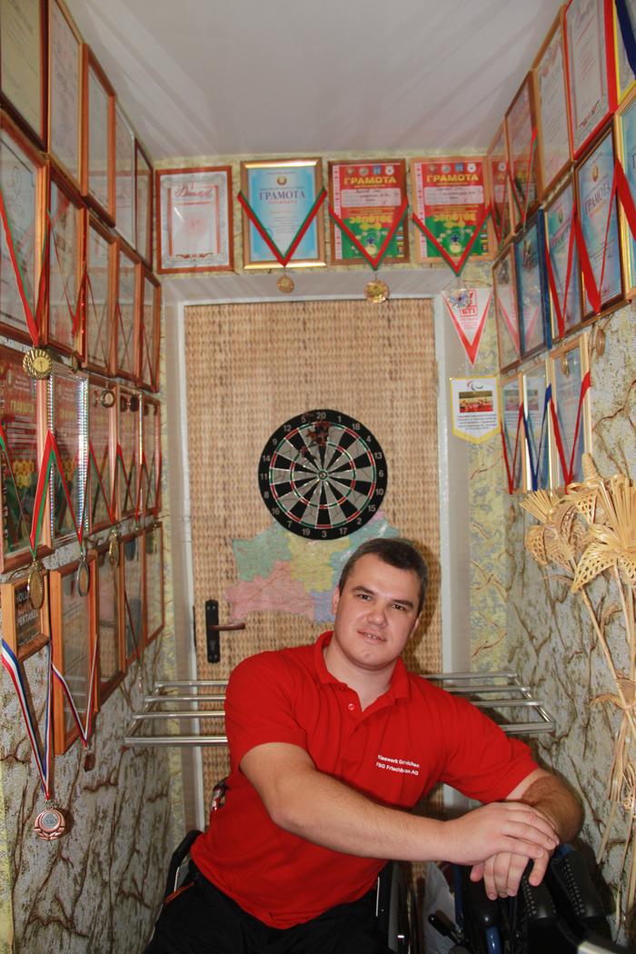 – Эксклюзіў, прычым не толькі прыгожы, але і функцыянальны, зручны, – з гонарам за мужа вызначыла яго работу Галя. Ён і лінолеум сам на падлогу паслаў, навясныя шафы, стол, камод, ложак зрабіў, шпалеры паклеіў. І ўсё гэта адмыслова – не прыдрацца. І пандус да веранды – таксама Алегава работа. А яшчэ ён, як высветлілася, не проста спартыўны чалавек – масціты спартсмен. Дыпломы за перамогі ў абласных і рэспубліканскіх спаборніцтвах і чэмпіянатах па гіравым спорце, штурханні ядра, тэнісе, валейболе, якіх удастоены Алег Зыранаў, упрыгожваюць сцены ў нішы пакоя, дзе аформлены сямейны спартыўны куток. Алег выступае і ў асабістым заліку, і ў складзе зборнай каманды Брэсцкай вобласці.