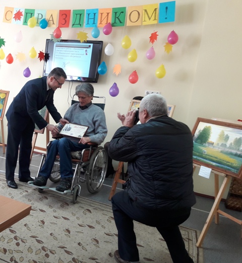 Адзін з падапечных Івацэвіцкага ТЦСАН – мясцовы паэт, празаік і мастак Анатоль Галушка. Колішняя сур’ёзная траўма пазваночніка пазбавіла яго магчымасці рухацца без інваліднай каляскі. Але абмежаваныя фізічныя магчымасці не перашкаджаюць яму ствараць: цудоўныя карціны выходзяць з-пад пэндзля, што мастак трымае зубамі. А кніга «Яблычны Спас» нядаўна прынесла Анатолю Галушку літаратурную прэмію Брэсцкага аблвыканкама імя У.А. Калесніка. Па аб’ектыўных прычынах Анатоль Мікалаевіч не змог прысутнічаць на цырымоніі ўзнагароджання ў Брэсце, таму гэту прыемную па-дзею перанеслі па месцы жыхарства паэта. Падчас сустрэчы з прадстаўнікамі СМІ дыплом лаўрэата таленавітаму аўтару ўручыў першы намеснік начальніка ўпраўлення ідэалагічнай работы, культуры і па справах моладзі аблвыканкама Вадзім Ляўковіч (на здымку).