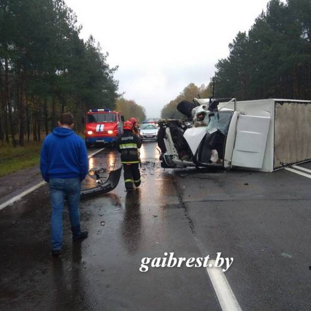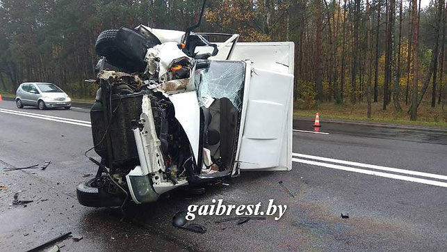 Грузовик опрокинулся после столкновения с экскаватором в Брестской области