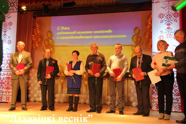 Да прысутных з віншаваннямі звярнуўся дырэктар Брэстаблаграсэрвіса Уладзімір Махнач. На сцэну запрашалі лепшых: падзякай міністра сельскай гаспадаркі і харчавання Рэспублікі Беларусь адзначана загадчыца малочнатаварнай фермы «Цэнтр» ДП «Нача» Людміла Чарапавіцкая, Граматай Брэсцкага абласнога выканаўчага камітэта – інжынер-электрык СВК «Ляхавіцкі» Леанід Юнік. Падзячны ліст абласнога Савета дэпутатаў накіраваны трактарысту-машыністу ДП «Нача» Віктару Кунцэвічу. Ганаровых грамат камітэта па сельскай гаспадарцы і харчаванні Брэсцкага аблвыканкама ўдастоены трактарыст-машыніст ААТ «Жарабковічы» Аляксандр Тадра і начальнік вытворчай лабараторыі СААТ «Ляхавіцкі малочны завод» Алена Саладуха.