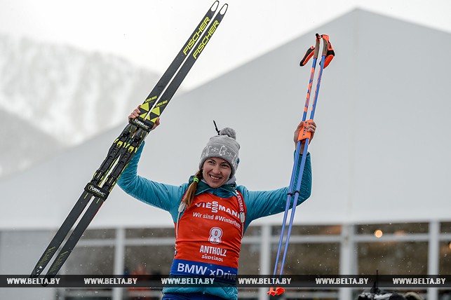 21 января, Минск /Корр. БЕЛТА/. Дарья Домрачева победила в масс-старте на этапе Кубка мира по биатлону в Антхольце, сообщает корреспондент БЕЛТА. Удачная стрельба на заключительном огневом рубеже позволила белоруске выйти на первое место. Начало гонки для трехкратной олимпийской чемпионки Сочи получилось не столь успешным. Промах на первой стрельбе лежа не позволил лидировать ей с первых минут.