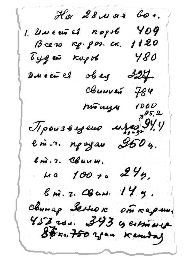 Старонка за старонкай: што зроблена за паўгоддзе, дзе ўбраць сена, дзе неапрацаваны лён, прозвішчы даярак, якія надойваюць у дзень па 16 кілаграмаў малака ад каровы, колькі здалі мяса, малака, яек, нататкі з раённага сходу, параметры на 1961 год…