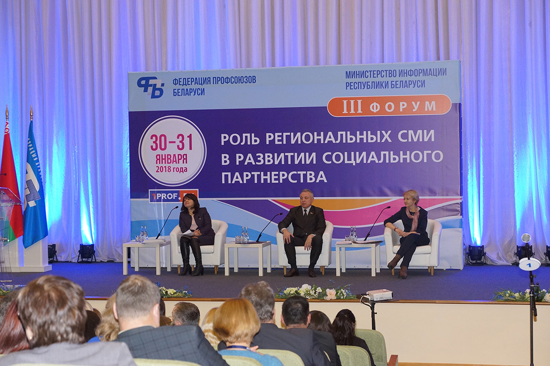 Напрыканцы студзеня, Мінск сабраў каля 150 прадстаўнікоў сродкаў масавай інфармацыі з усіх рэгіёнаў краіны на ІІІ Форум прафсаюзаў «Роля рэгіянальных СМІ ў развіцці сацыяльнага партнёрства». Арганізатарамі мерапрыемства выступілі Фэдэрацыя прафсаюзаў Беларусі і Міністэрства інфармацыі.