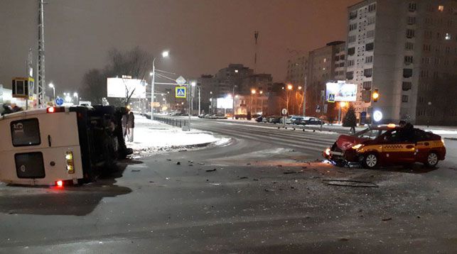 Авария произошла на перекрестке ул.Гаврилова-Орловская сегодня около 6.50. «По предварительной информации, местный житель 1968 года рождения, управляя автомобилем марки VW LT35 (маршрутка №15) двигался по ул.Орловской со стороны ул. Гродненской. На перекрестке неравнозначных дорог с ул.Гаврилова водитель не уступил дорогу автомобилю Toyota Prius (такси), который двигался по ул.Гаврилова со стороны ул.Я.Купалы, являющейся главной. Светофоры в это время не работали», — отметили в ГАИ. В результате ДТП травмированы три женщины и двое мужчин. Мужчины после оказания медицинской помощи отпущены домой. По факту ДТП проводится проверка, всего в маршрутке находились 10 человек, в такси — двое.