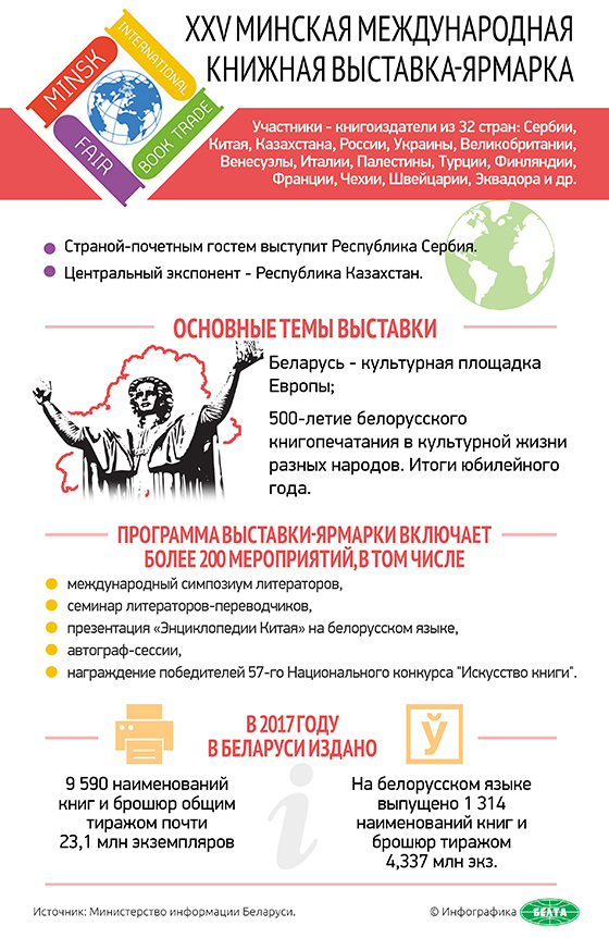 В 2017 году в Беларуси издано: 9 590 наименований книг и брошюр общим тиражом почти 23,1 млн экземпляров.