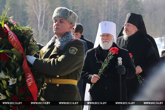Вместе с другими руководителями конфессий он пожелал, чтобы на благословенной белорусской земле больше никогда не повторялись события военного лихолетья. В мемориальном комплексе «Хатынь» состоялся митинг-реквием «Хай ніколі не змоўкнуць Хатыні званы». Его программа была построена с использованием приема погружения в историю, ведущего зрителей от событий 75-летней давности к современности. Состоялось возложение венков от главы государства, госорганов, общественных и религиозных организаций, дипкорпуса к Вечному огню. Глава Администрации Президента Наталья Кочанова зачитала обращение Главы государства к соотечественникам по случаю 75-летия хатынской трагедии.