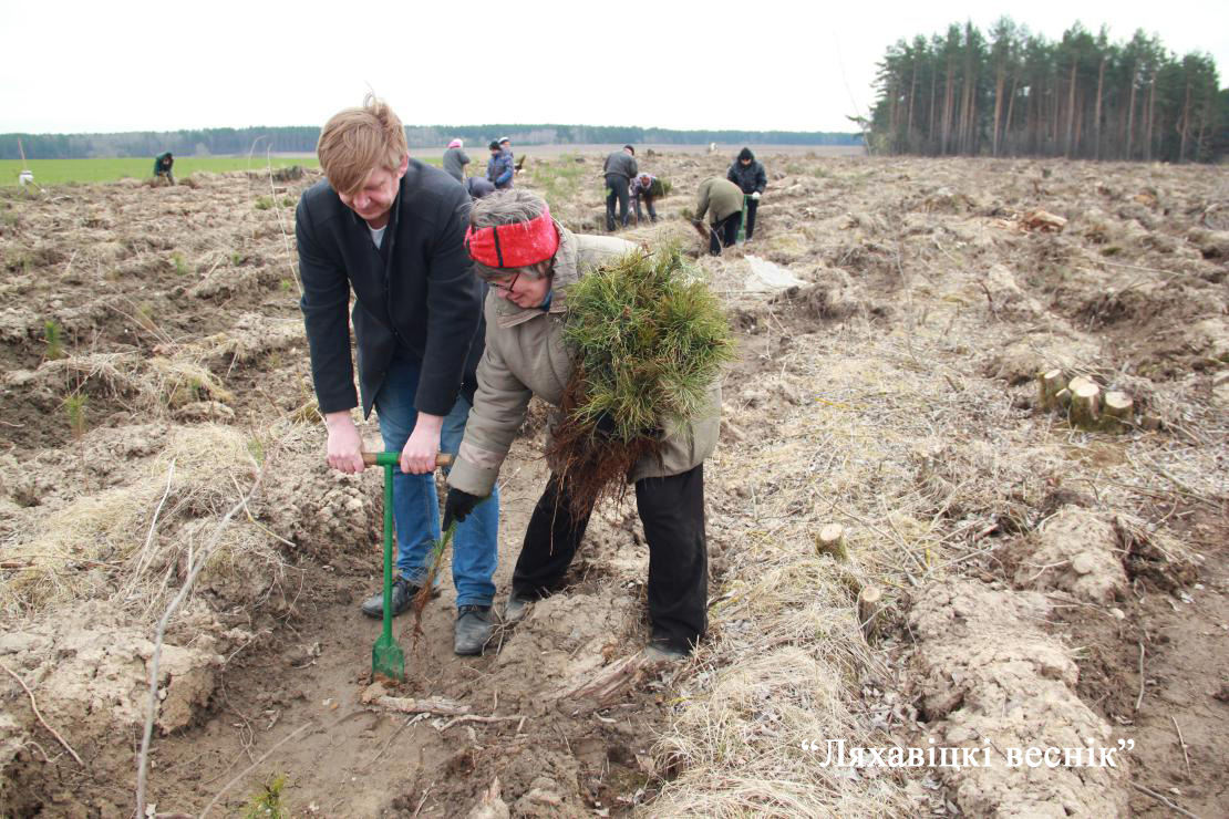 Неделя леса в нашем районе проходит активно и масштабно. К республиканской акции присоединяются и школьники, и многие-многие неравнодушные земляки. Так, 12 апреля члены районной ветеранской организации во главе со своим лидером Николаем Юрутём дружно высаживали саженцы сосны. Помогали им сотрудники лесхоза.