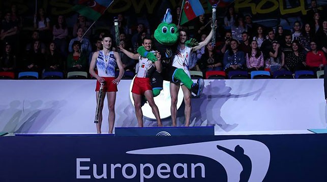 В финал индивидуальных прыжков не вышли Владислав Гончаров и Олег Рябцев, однако успех праздновал белорус Никита Ильиных, который с оценкой 59,365 балла стал серебряным медалистом чемпионата Европы. Победил известный португалец Диего Ганчиньо — 60,130.