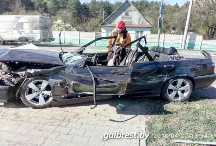 По предварительной информации 31-летний житель г.Жабинка управлял автомобилем марки «БМВ-318», двигаясь по левой полосе движения, в направлении от г.Бреста к г.Кобрин, совершил попутное столкновение с автомобилем марки «Маз-642205» в составе с полуприцепом «Маз-938662», который совершал манёвр левого поворота, затем, после столкновения с автомобилем «Маз», совершил боковое столкновение с автомобилем марки «Лада-Ларгус», который двигался по правой полосе в попутном направлении.