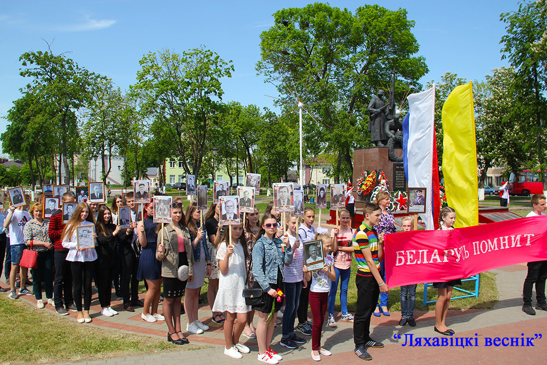 Пакуль мы помнім, яны жывыя, усе героі, якія ваявалі за мір. Рэспубліканская акцыя «Беларусь помніць» знайшла водгукі і ў сэрцах ляхавічан. Дарослыя і дзеці з партрэтамі сваіх родных і блізкіх – удзельнікаў Вялікай Айчыннай, якіх ужо няма ў жывых, сталі ў адну калону. Дзясяткі салдатаў той вайны, што змагаліся за Радзіму і чые сэрцы ўжо не б’юцца, вобразна кажучы, прынялі ўдзел у мірным шэсці ў гонар Перамогі.