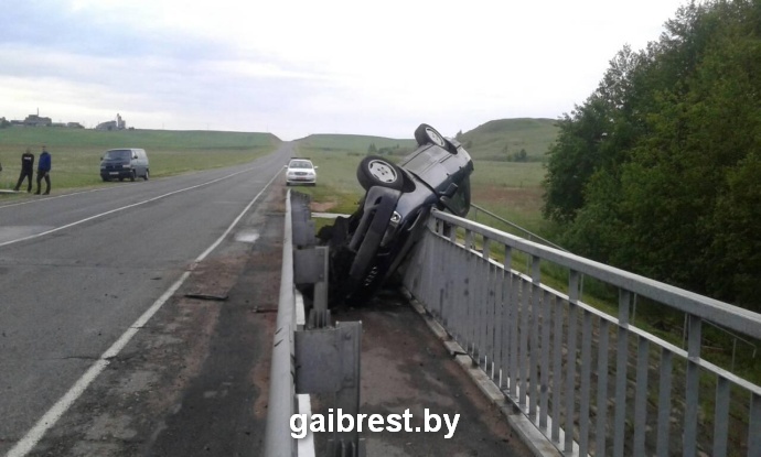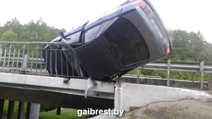 В Барановичском районе водитель не справился с управлением и автомобиль повис на мосту