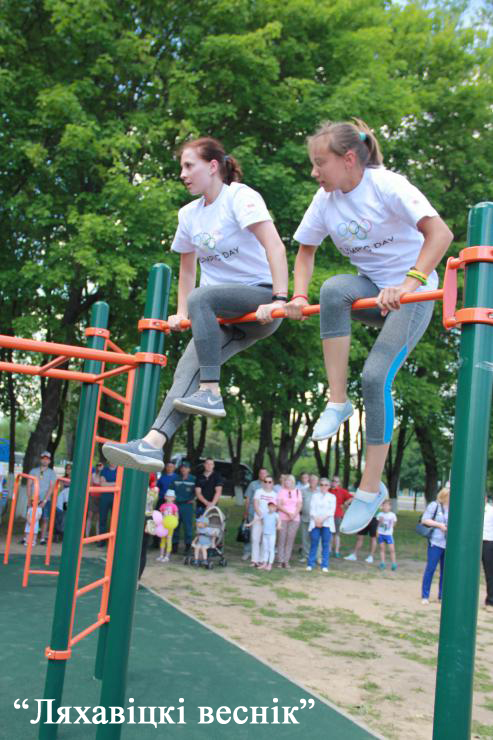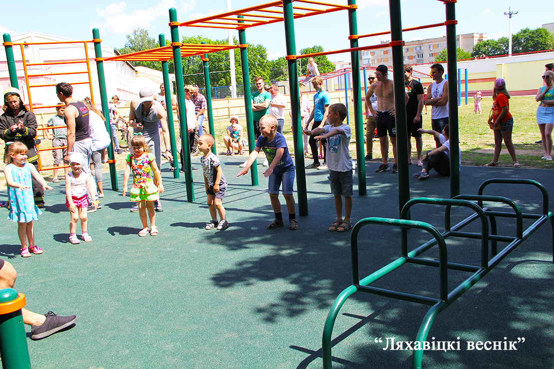 І пачалося спартыўна-забаўляльнае дзейства. Удзельнікі каманды федэрацыі «Стрыт-варкаўт» з Мінска прадэманстравалі разнастайныя практыкаванні на трэнажорах. Так выдатна валодаць уласным целам, выконваць складаныя комплексы магчыма толькі пры рэгулярных трэніроўках і здаровым ладзе жыцця. А колькі апладысментаў у свой адрас атрымалі супрацоўнікі райаддзела па надзвычайных сітуацыях, якія не горш за спартсменаў прадэманстравалі сілу і спрытнасць. Свой фізкультазарт паказалі і маленькія ляхавічане, якія з задавальненнем скакалі, прысядалі, бегалі.