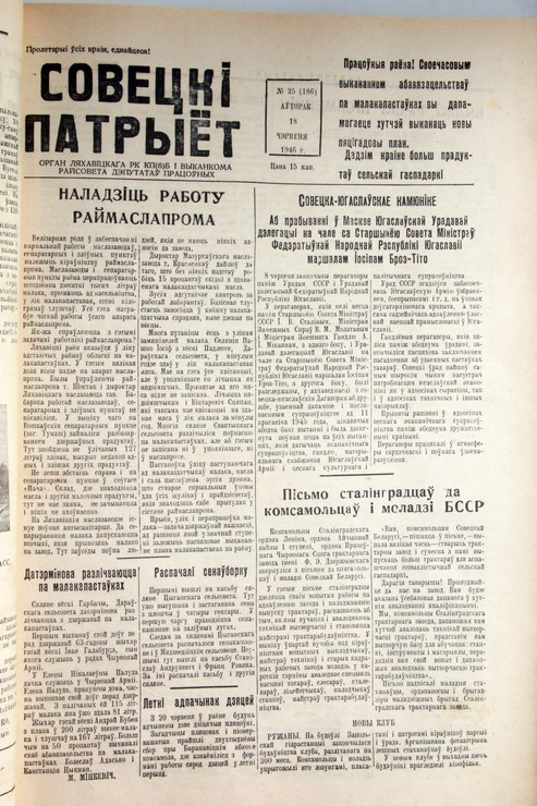 - Пра што пісала раёнка: гартаем старонкі гісторыі. «Совецкі патрыёт» ад 18.06. 1946 года