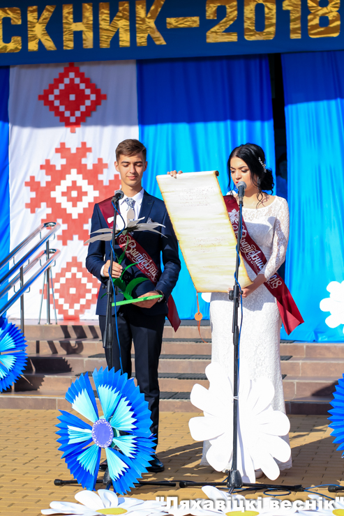 К героям праздника с поздравлениями и пожеланиями обратился председатель райисполкома Александр Каминский. Слова напутствия выпускникам адресовала начальник отдела образования Светлана Якубовская.