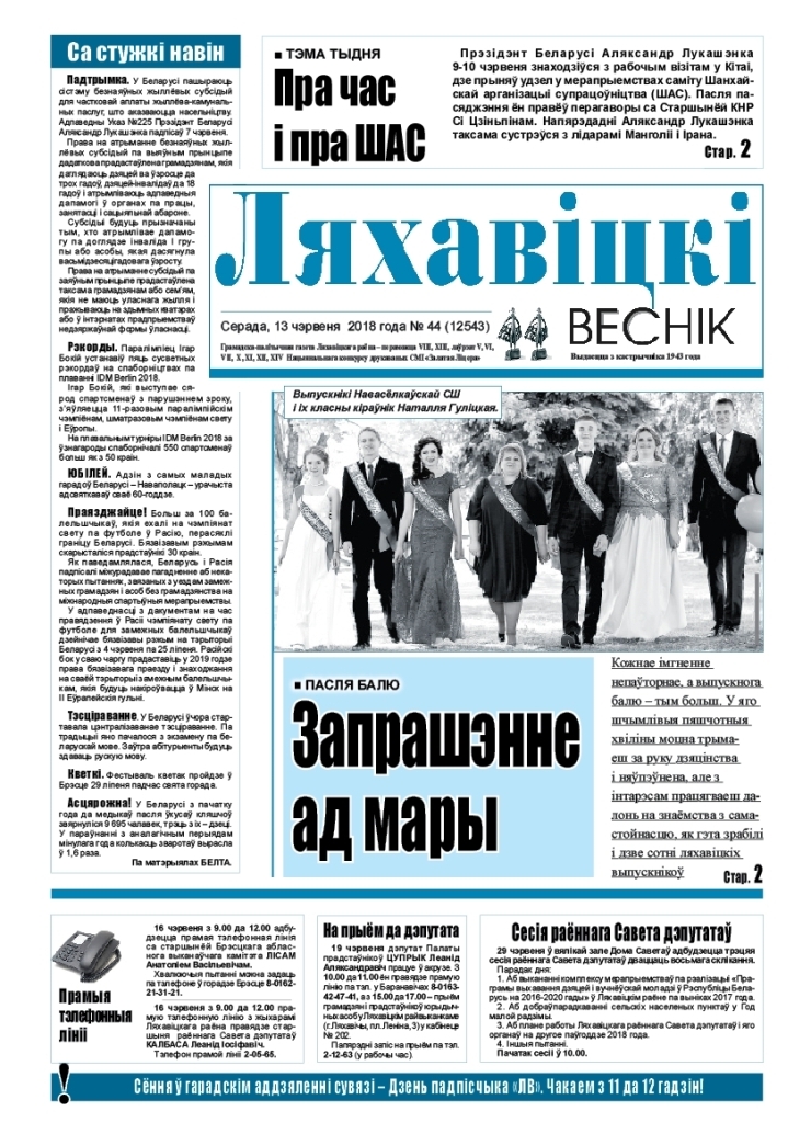 Чытайце ў «Ляхавіцкім весніку» ў нумары ад 13 чэрвеня 2018 года