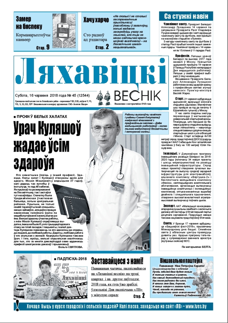 В свежем выпуске «Ляхавіцкага весніка» от 16 июня