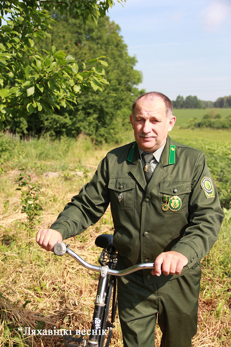Ведае Міхаіл Сцяпанавіч, дзе прабегла каза, дзе заяц праскочыў, а дзе хвастом замятала ліса. Унук з цікавасцю слухае расказы, глядзіць, як дзед агароджвае мурашнікі, вясной рабіў шпакоўні. Калі на веласіпедзе (ён усюды пройдзе), калі пешшу накручвае за дзень кіламетраў 20-25. У працоўным раскладзе – ачыстка, пасадка лесу, вываз смецця, выяўленне ўзгаранняў і многае іншае. Летась і пазалетась удзельнічаў у ліквідацыі ўсыханняў лясных насаджэнняў на Лунінеччыне, разам з калегамі змагаўся з наступствамі стыхіі ў Чэрвеньскім і Смалявіцкім раёнах. Умовы жыцця ў такіх абставінах, можна сказаць, спартанскія. Але Міхаіл Сцяпанавіч да цяжкасцяў падыходзіць як да часовых дробязяў. Тым больш, адзначае, прыемна бачыць потым вынікі сваёй працы, радавацца кожнаму пасаджанаму дрэўцу. Работнік ён надзейны і старанны, у паслужным спісе мае ганаровую ўзнагароду – нагрудны знак Міністэрства лясной гаспадаркі «20 гадоў бездакорнай службы ў дзяржаўнай лясной ахове». Але хваліцца не любіць. Галоўнае, гаворыць, каб раслі дрэвы, не было пажараў. Яны – самае страшнае ў іх справе.