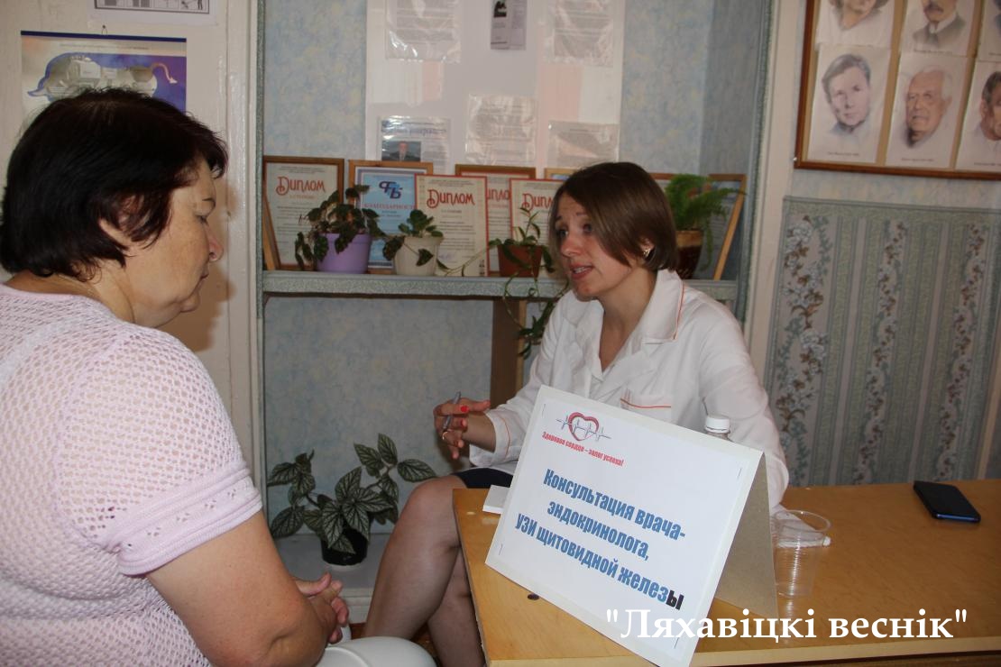 …Ля кабінета, дзе праводзяць ультрагукавое даследаванне, – самая вялікая чарга. Вельмі зручна – зрабіў УГД, і тут жа ўрач-эндакрынолаг агучыў яго вынікі, даў парады і рэкамендацыі. Ляхавічанка Тамара Завадская задаволена расказвае, што даўно збіралася праверыць шчытападобную залозу, але ўсё неяк не атрымлівалася. А тут і УГД зрабіла, і да доктара трапіла.