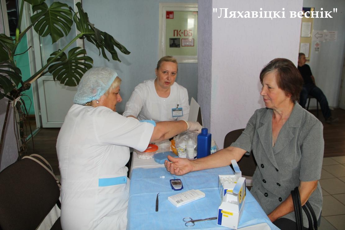 Па даных абласной санслуж-бы, са 140 пацыентаў, якія вымяралі артэрыяльны ціск, прыкладна ў 15 працэнтаў ён аказаўся павышаным. УГД шчытападоб-най залозы зрабілі 115, электракардыяграму – 59 чалавек. Некаторым з іх рэкамендавана прайсці паглыбленае абследаванне. Больш за 140 чалавек навучыліся праводзіць тэст, які дапамагае вызначаць раннія прыкметы інсульту. Усяго праведзена 486 дыягнастычных дасле-даванняў і 457 кансультацый.