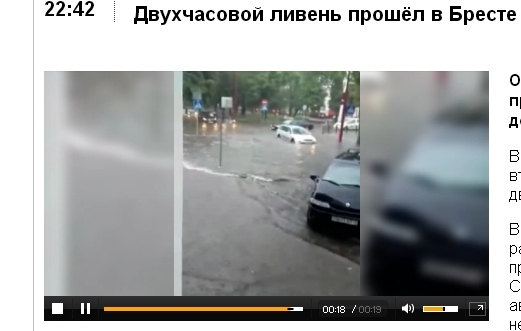 О погоде. Синоптики прогнозировали 12 июля сильные дожди и грозы. И не ошиблись. В центре Бреста – потоп. Брест во второй половине дня накрыл двухчасовой ливень. В это время многие уже возвращались с работы домой. И прямо в центре города преодолевали водные препятствия. Сложнее всего пришлось автомобилистам. Ливневая канализация не везде справлялась с таким наплывом. Местами вода достигала полуметра. А потому – оставалось не спеша плыть по течению. Тем, чья техника не выдерживала, пришли на помощь. «Затонувшие» автомобили вытягивали внедорожниками. Синоптики предупреждают, что 13 июля всё может повториться.