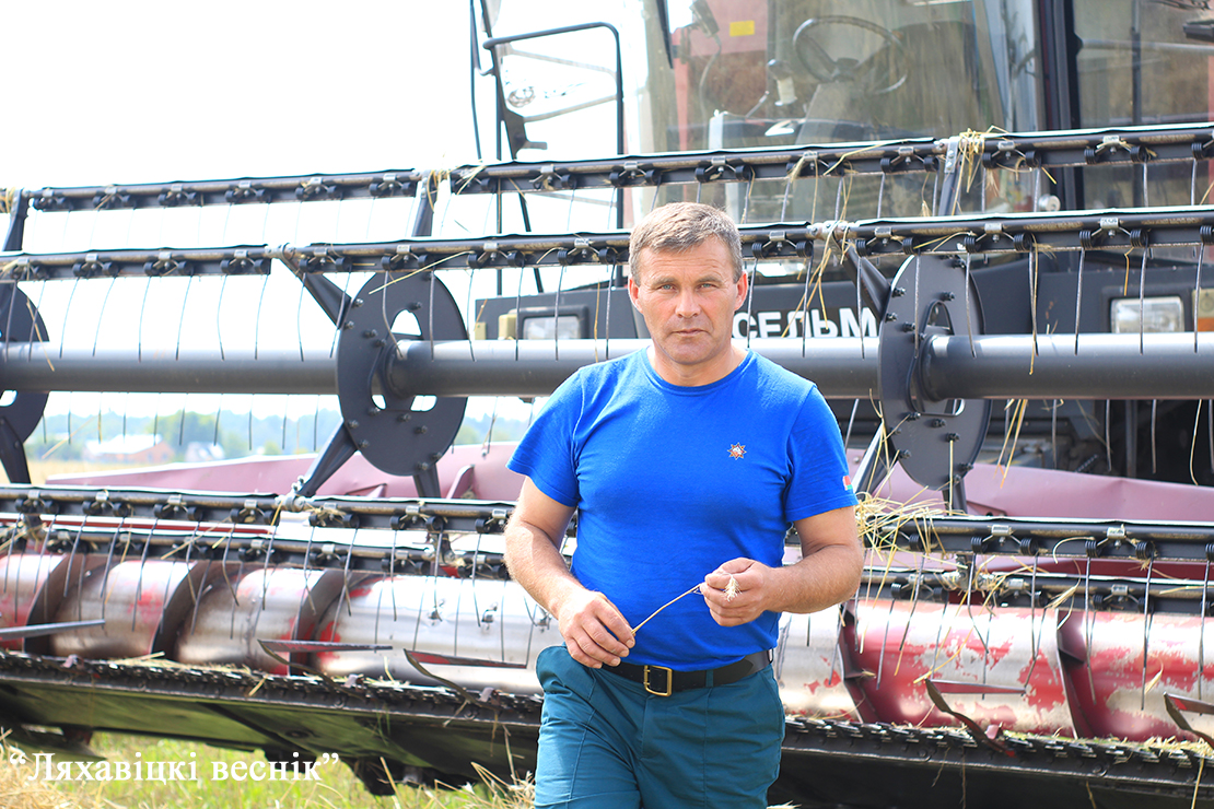 – А справу камбайнера лічу асаблівай. Нават за тое, што з кабіны КЗСа адкрываюцца неверагодныя краявіды нашай малой радзімы. Такія пейзажы натхняюць на працу. А з кожным намалочаным бункерам мы павялічваем хлебны скарб Ляхавіччыны.