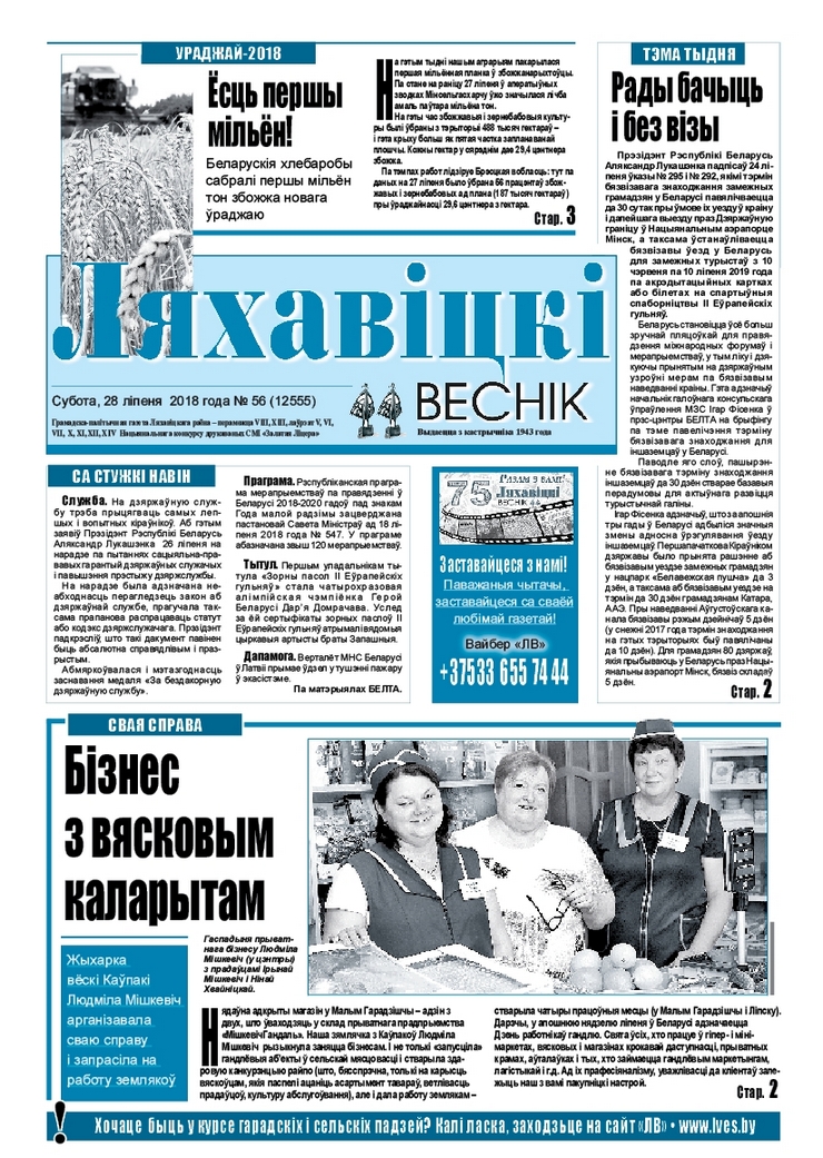 Чытайце ў нумары «Ляхавіцкага весніка» ад 28 ліпеня
