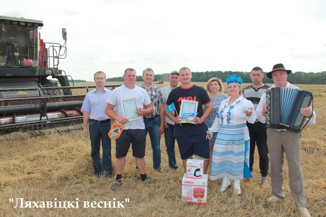 Ушаноўваць герояў дня прыбыла цэлая дэлегацыя. Першы намеснік старшыні райвыканкама – начальнік упраўлення па сельскай гаспадарцы і харчаванні Іван Шматко і прафсаюзны лідар аграрыяў Ірына Чура, начальнік аддзела ідэалагічнай работы, культуры і па справах моладзі райвыканкама Алег Траццяк, кіраўнік ААТ Антон Булаты віншавалі хлебаробаў цёпла і шчыра, ад душы дзякавалі за выніковую працу. А яшчэ ў гонар хлебаробаў гучалі песні ў выкананні ўдзельнікаў народнага ансамбля народнай песні «Крыніца».