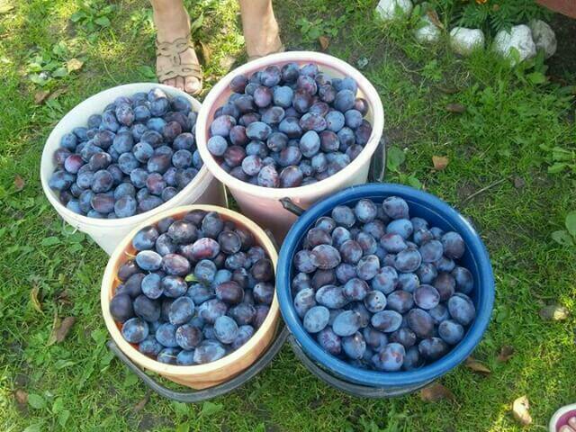 Дыдышка Соф’я Іванаўна збірае ўраджай сліў