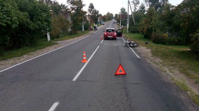 Инцидент произошел 29 августа в деревне Ахремовцы Браславского района. Водитель легкового автомобиля «Рено Клио» ехала с небольшой скоростью по населенному пункту. В какой-то момент на дорогу выбежали несколько кур, женщина начала резко тормозить и сзади в машину врезался мотоцикл. По словам водителя «Рено», она не поняла, что произошло, услышала только какой-то хлопок, а когда вышла из машины, то увидела мужчину и лежащий рядом мотоцикл. У легкового автомобиля разбито заднее стекло.