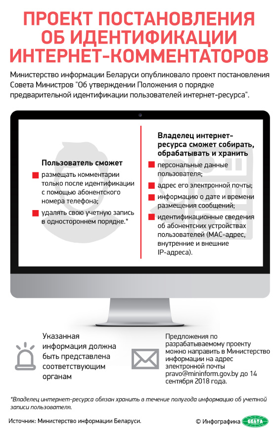 Навіны Проект постановления об идентификации интернет-комментаторов 13/09/2018 101 redakcyja 0 Comment Инфографика БЕЛТА.