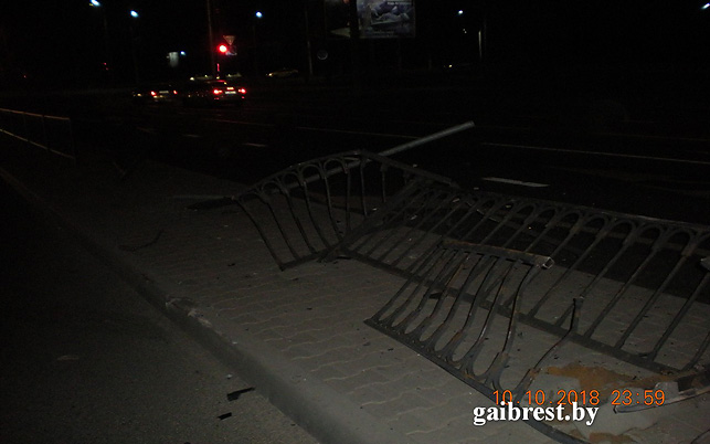 Авария произошла 10 октября около 23.30 на ул. Московской. По предварительной информации, 38-летний житель Бреста на автомобиле «Лексус» двигался от проспекта Машерова к ул. Пионерской. При повороте налево водитель не выбрал безопасную скорость движения, не справился с управлением автомобиля и наехал на разделительное заборное ограждение.