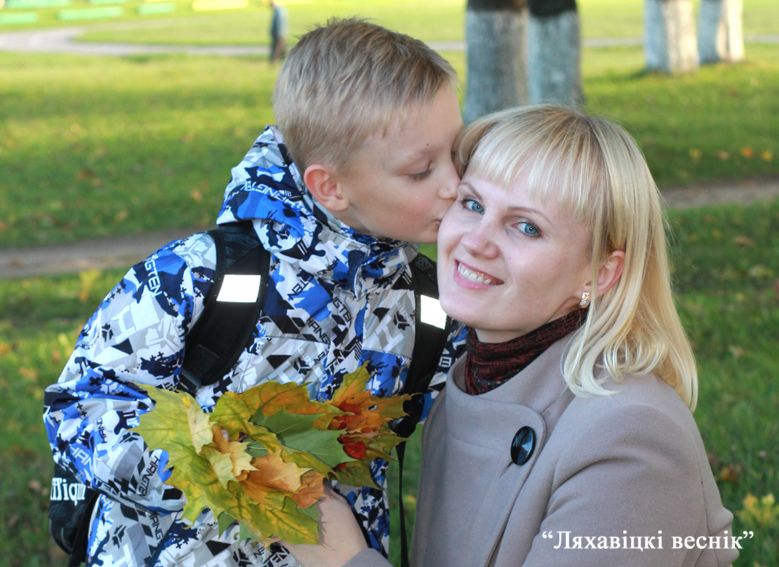 Са святам, мамачка! Ляхавічанка Алена Асецкая з сынам Даніілам. Хіба могуць параўнацца па прыгажосці з гэтым восеньскім букетам з залатога кляновага лісця самыя шыкоўныя кветкі?!