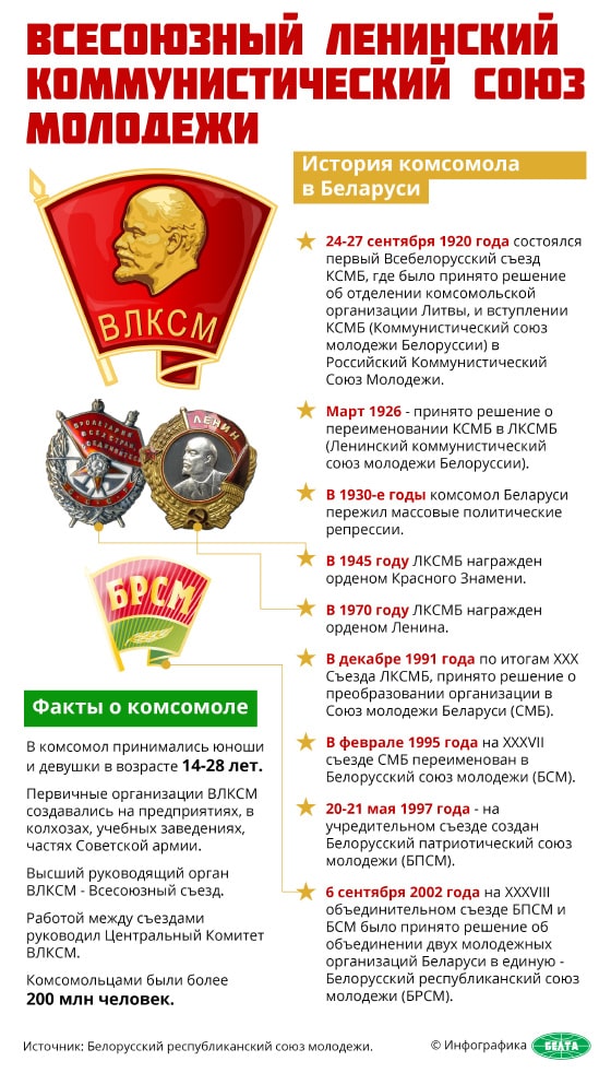 Грамадства Всесоюзный ленинский коммунистический союз молодежи 29/10/2018 149 redakcyja 0 Comment Инфографика БЕЛТА.