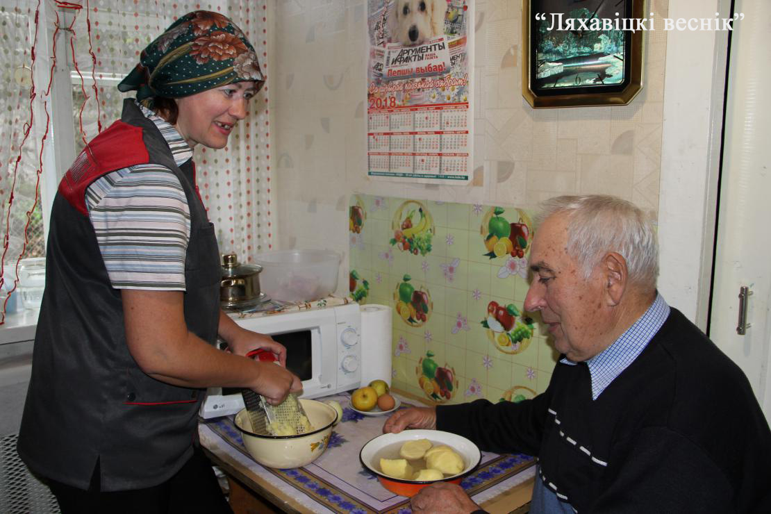 вельмі добразычлівая, уважлівая і спагадлівая. Работа ў яе руках спорыцца. Хутка прыбярэ ў доме, супчыку наварыць. Навучыла і свайго падапечнага кулінарыць. Ён з жаданнем спасцігае новае. Працаваў некалі ў лясгасе, выкладаў механізацыю ў мясцовым тэхнікуме, быў там намеснікам дырэктара па працоўным навучанні. Адзначае, што ўсё ў яго ёсць, а чаго сам не можа зрабіць – дапаможа сацработнік.