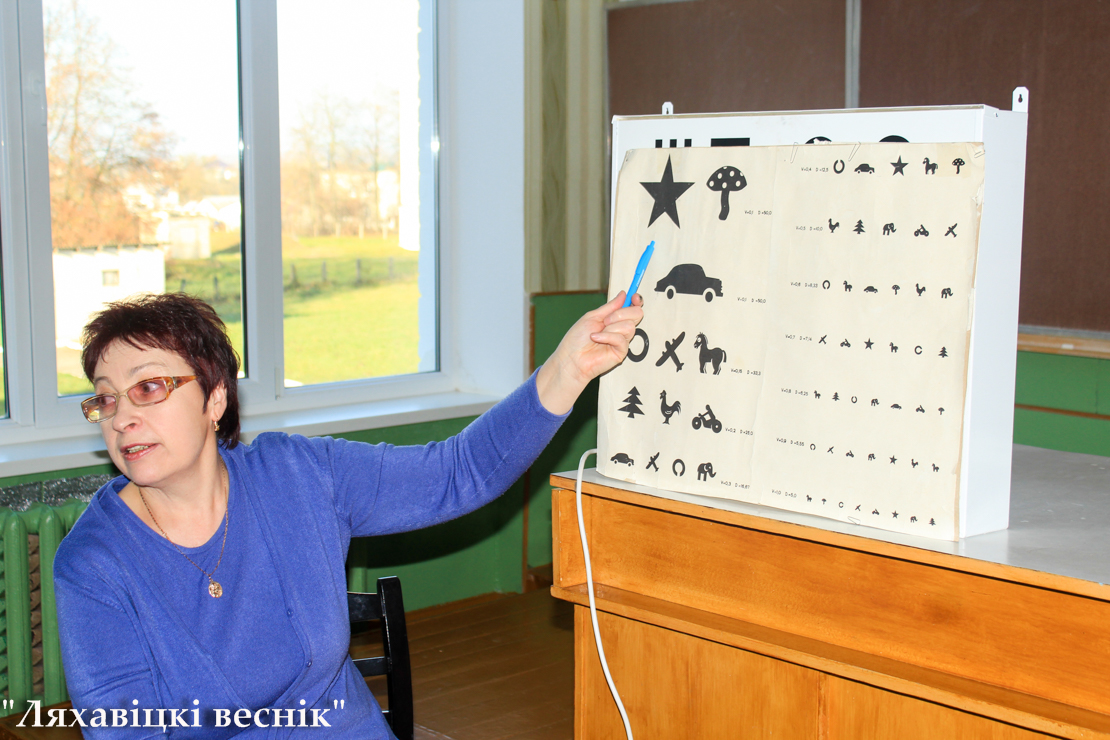 Гляджу і бачу. Першай кропкай, дзе спыніўся афтальмалагічны дэсант у нашым раёне, стала Дараўская школа. А ўсяго «дэсантная» геаграфія закране 12 адрасоў
