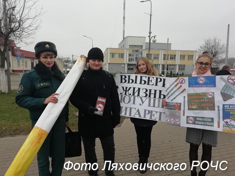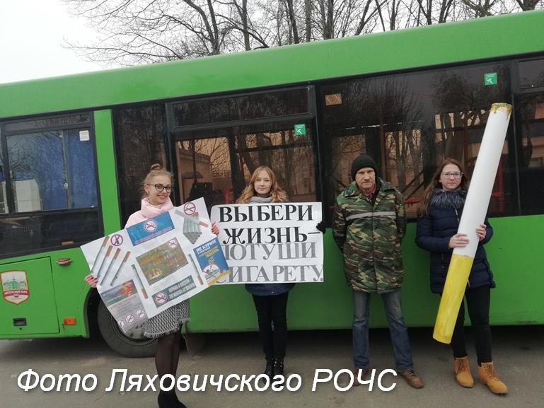 В Ляховичах стартовал первый этап республиканской акции «Не прожигай свою жизнь!»Работники Ляховичского районного отдела по чрезвычайным ситуациям совместно с волонтерами районной организации БОКК провели профилактическое мероприятие на автостанции. Пассажирам и прохожим участники акции рассказали о проходящей на территории района акции,о недопустимости курения в постели, приводили примеры, когда необдуманные поступки, оборачивались трагическими случаями, раздали тематические памятки. Волонтеры и спасатели призывали прохожих задуматься о том, что курение вредно для здоровья. Курящих оказалось немного, но все они давали один ответ, что курить будут, но соблюдая все необходимые меры предосторожности.