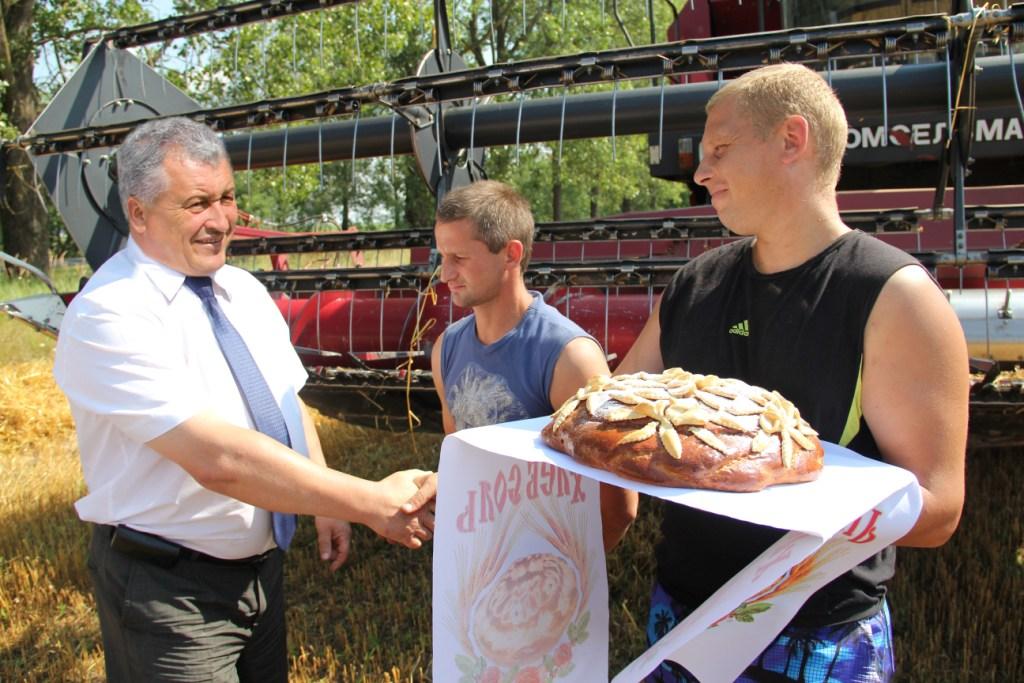 Візіт кіраўніка раёна на зерневыя палеткі райаграсэрвісу меў святочную і нават стратэгічную нагоду. Экіпаж у складзе старшага камбайнера Андрэя Юруця і камбайнера Юрыя Сяргея дасягнулі значнай, але, ёсць усе падставы спадзявацца, не апошняй перамогі на сёлетняй уборцы — яны першыя ў раёне «тысячнікі» па намалоце зерня новага ўраджаю.