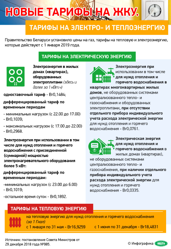 Эканоміка Новые тарифы на ЖКУ. Тарифы на электро- и теплоэнергию 16/01/2019 188 redakcyja Инфографика БЕЛТА.