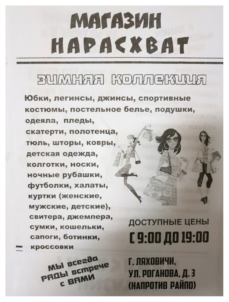 Навіны РЭКЛАМА Магазин «Нарасхват» в Ляховичах приглашает за покупками 21/02/2019 679 redakcyja ООО «ТоргАльазис» УНП 290871111