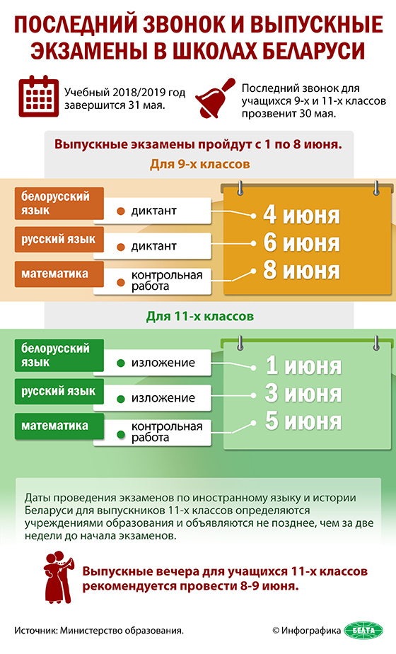 Адукацыя Навіны Последний звонок и выпускные экзамены в школах Беларуси 10/04/2019 219 redakcyja Инфографика БЕЛТА.