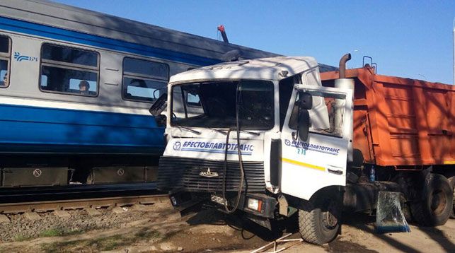 Дорожно-транспортное происшествие случилось 18 апреля около 8.20. По предварительной информации, за рулем автомобиля МАЗ находился брестчанин 1978 года рождения. Водитель работал на строительной площадке в районе Кобринского путепровода, которую пересекают железнодорожные пути. В результате столкновения с тепловозом грузовик получил механические повреждения. Никто не пострадал.