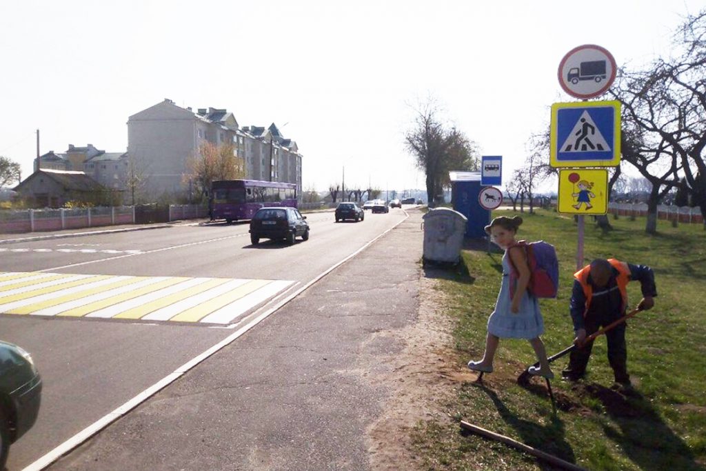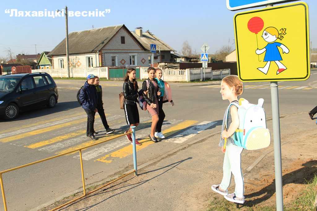 В Ляховичах возле школ и детских садов появились макеты фигур ребят, которые собираются переходить дорогу